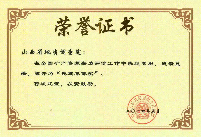 研究院始終堅持“質(zhì)量第一,誠信為本,勇于創(chuàng)新”的宗旨,原始資料及成果報告優(yōu)良率100%,優(yōu)秀率達75%。完成的西藏1∶25萬土則崗日幅、山西1∶25萬忻州市幅區(qū)域地質(zhì)調(diào)查獲國土資源部科學(xué)技術(shù)二等獎;在全國優(yōu)秀圖幅展評中1∶25萬忻州市幅獲一等獎,1∶25萬托和平錯、應(yīng)縣幅及1∶5萬御棗口幅獲二等獎,1∶25萬岢嵐縣幅、臨汾市幅、侯馬市幅等6個項目獲三等獎,其中1∶25萬、應(yīng)縣幅、岢嵐縣幅、侯馬市幅獲中國地質(zhì)調(diào)查成果二等獎。